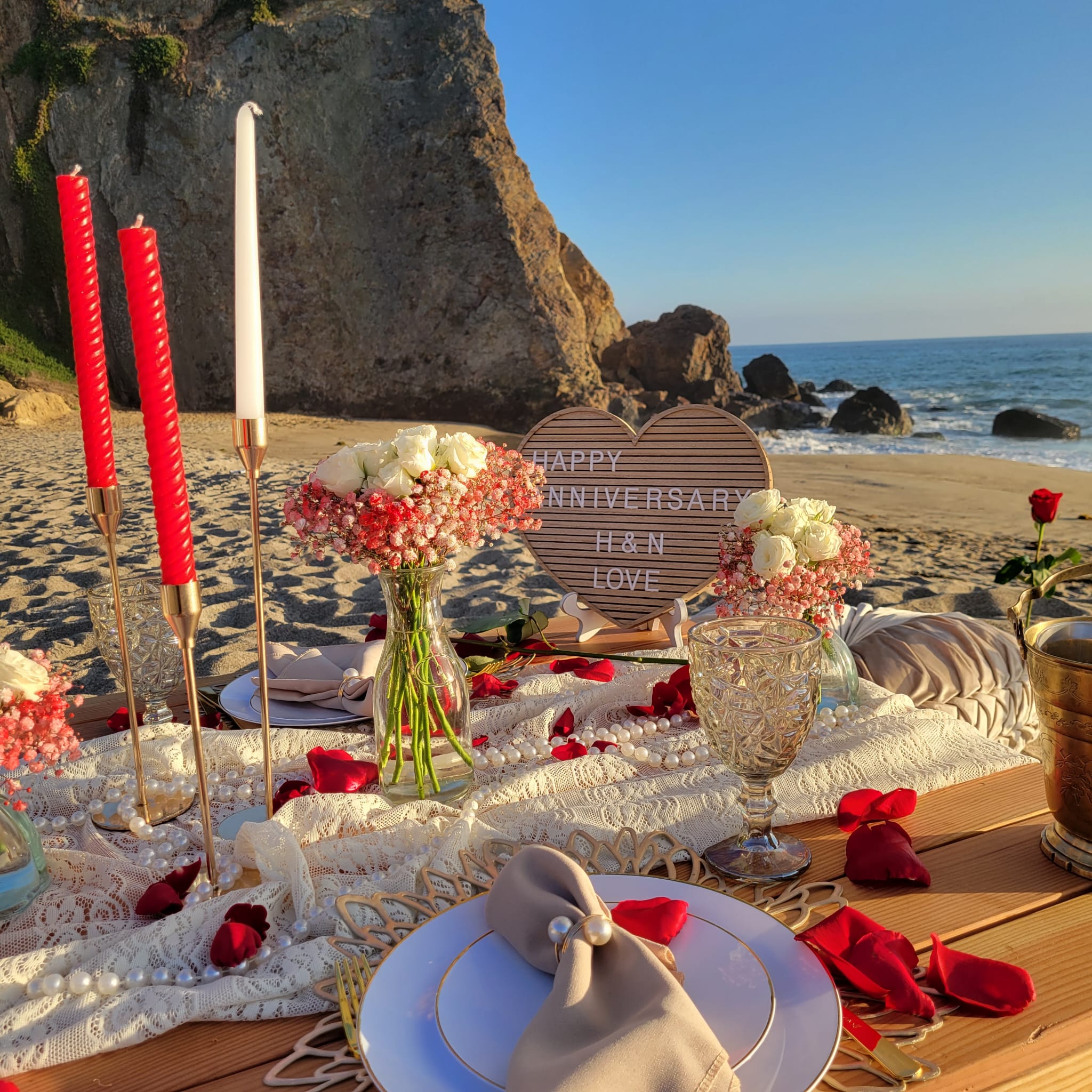 Create timeless memories with a beachfront romantic dinner, serenaded by ocean waves—a cherished experience for two lovers to treasure