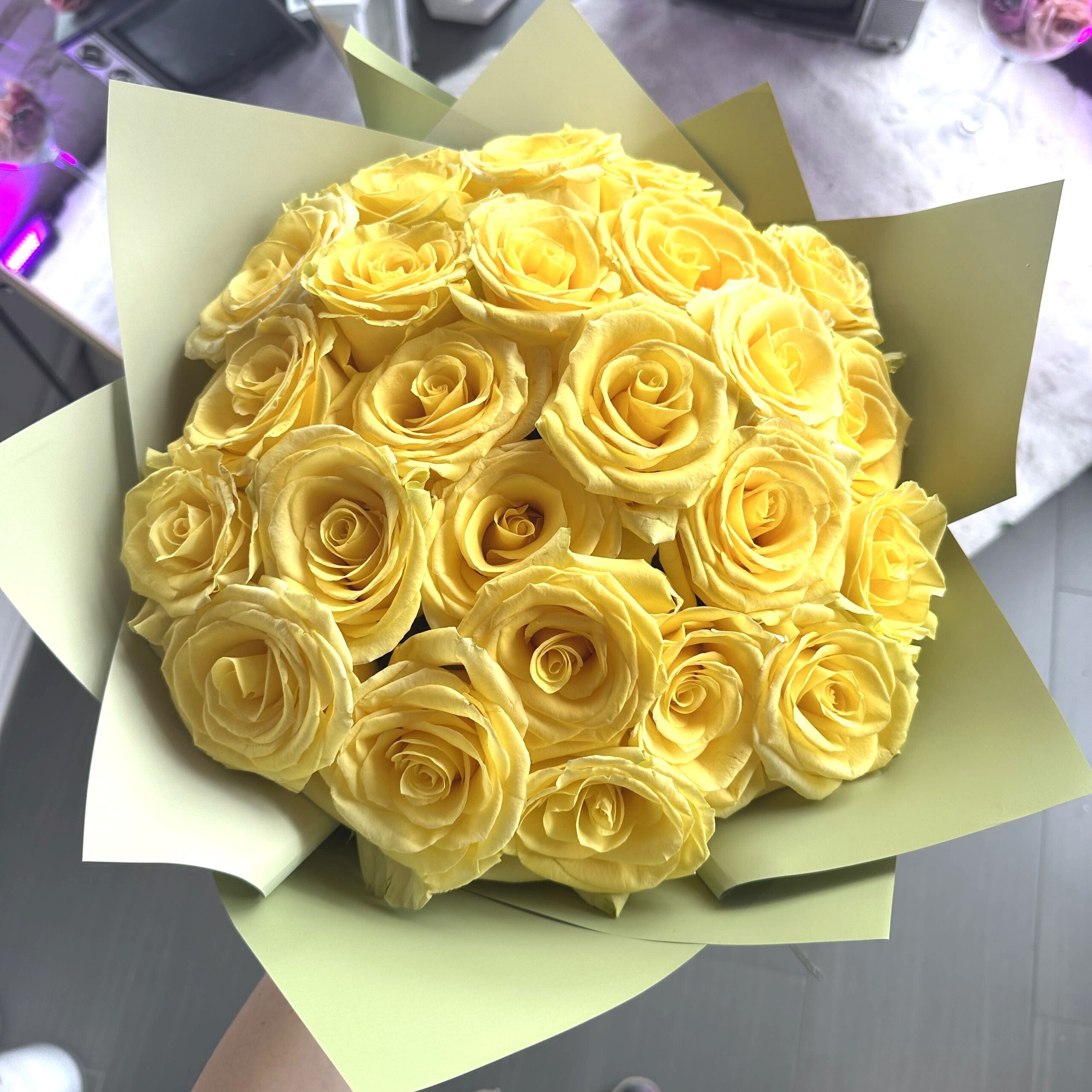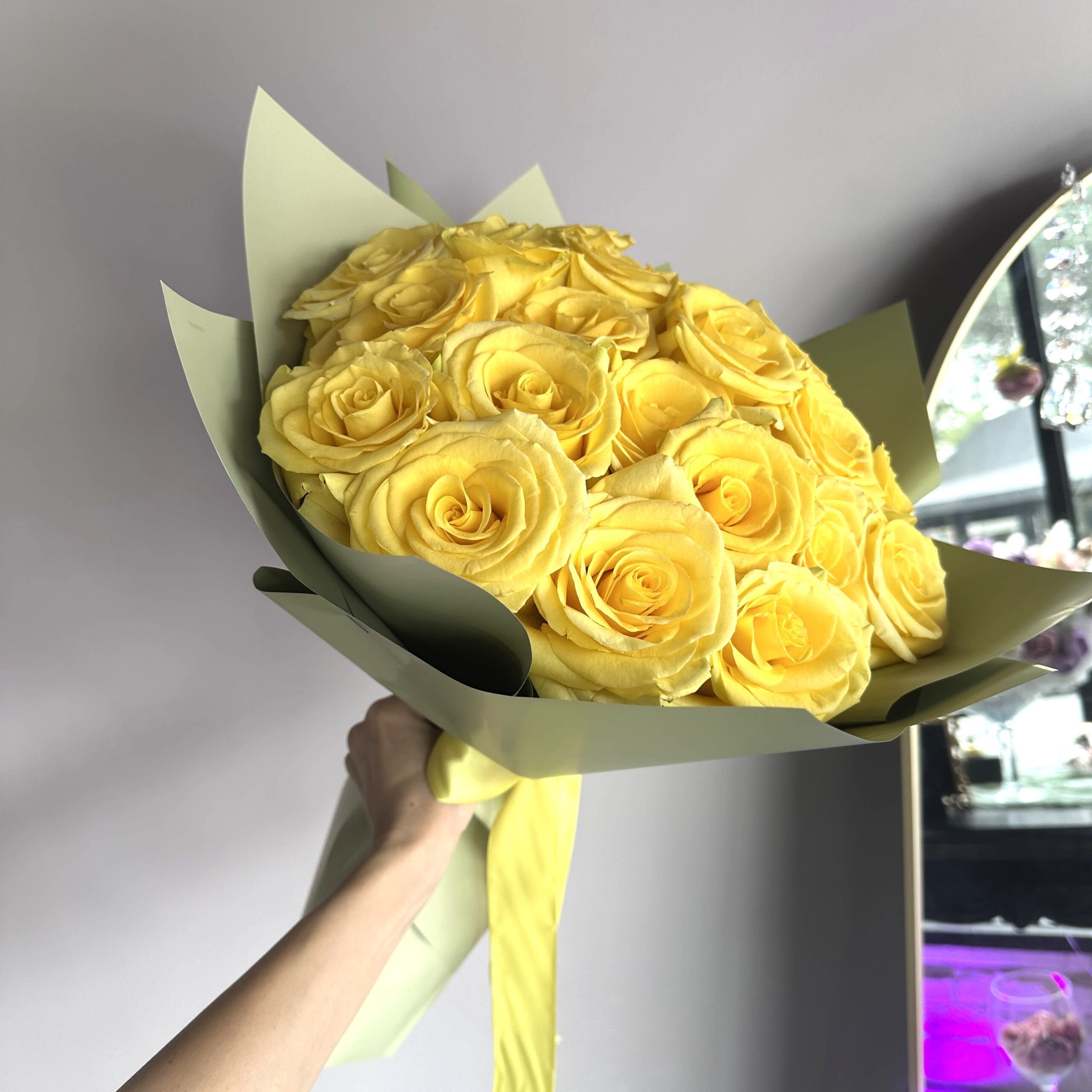 • This bouquet comes without a vase. You can select a glass vase from the shown add-ons.