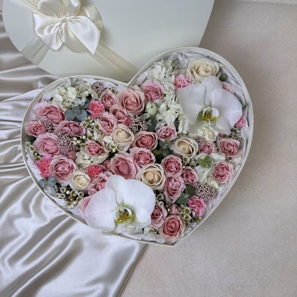 • An exquisite heart-shaped masterpiece crafted with lush, high-end flowers. A stunning symbol of romance and elegance, perfect for anniversaries, proposals, Valentine's Day or grand gestures.
