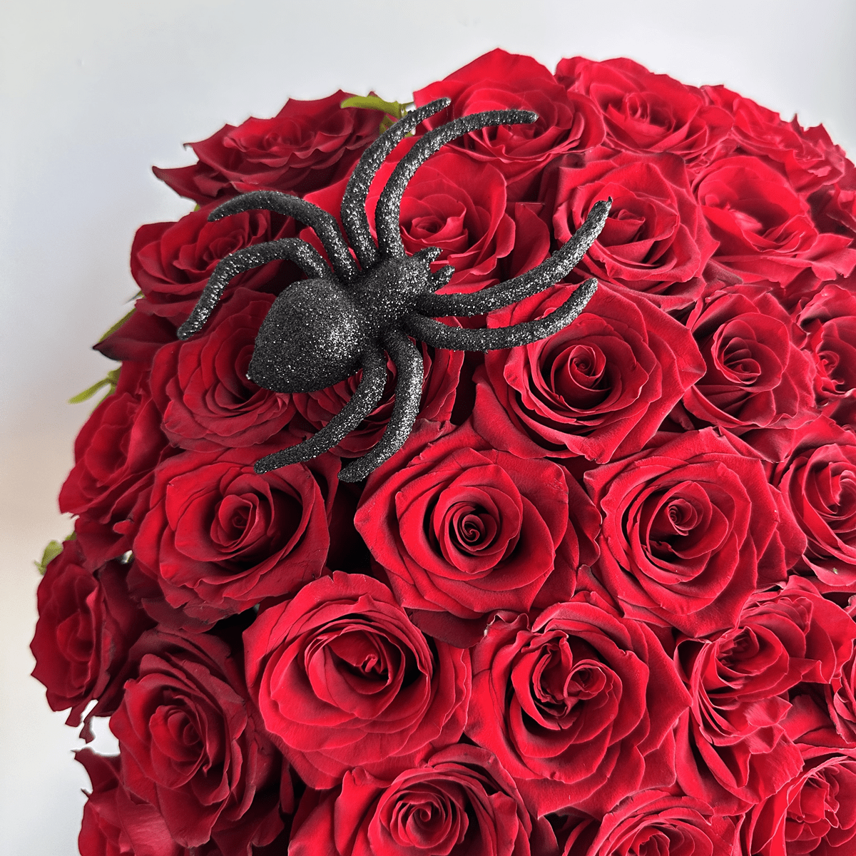 DELUXE size is in the picture with 100 roses. Roses in a Box – this arrangement is saturated with courage and notes of tenderness, harmoniously intersecting with all the passion of nature. Same-Day Delivery is usually available in white, red, peach, and pink. Other colors are available for Next-Day Delivery. A combination of colors is available. The colors are up to the florist, but you can specify your preferred colors in the Notes or call us.