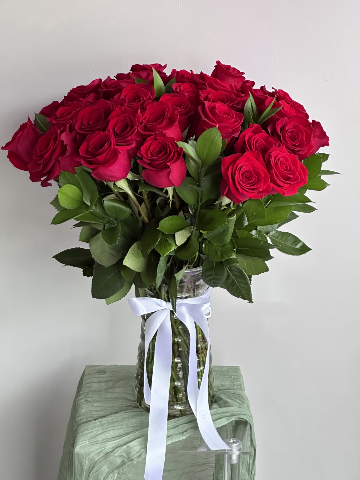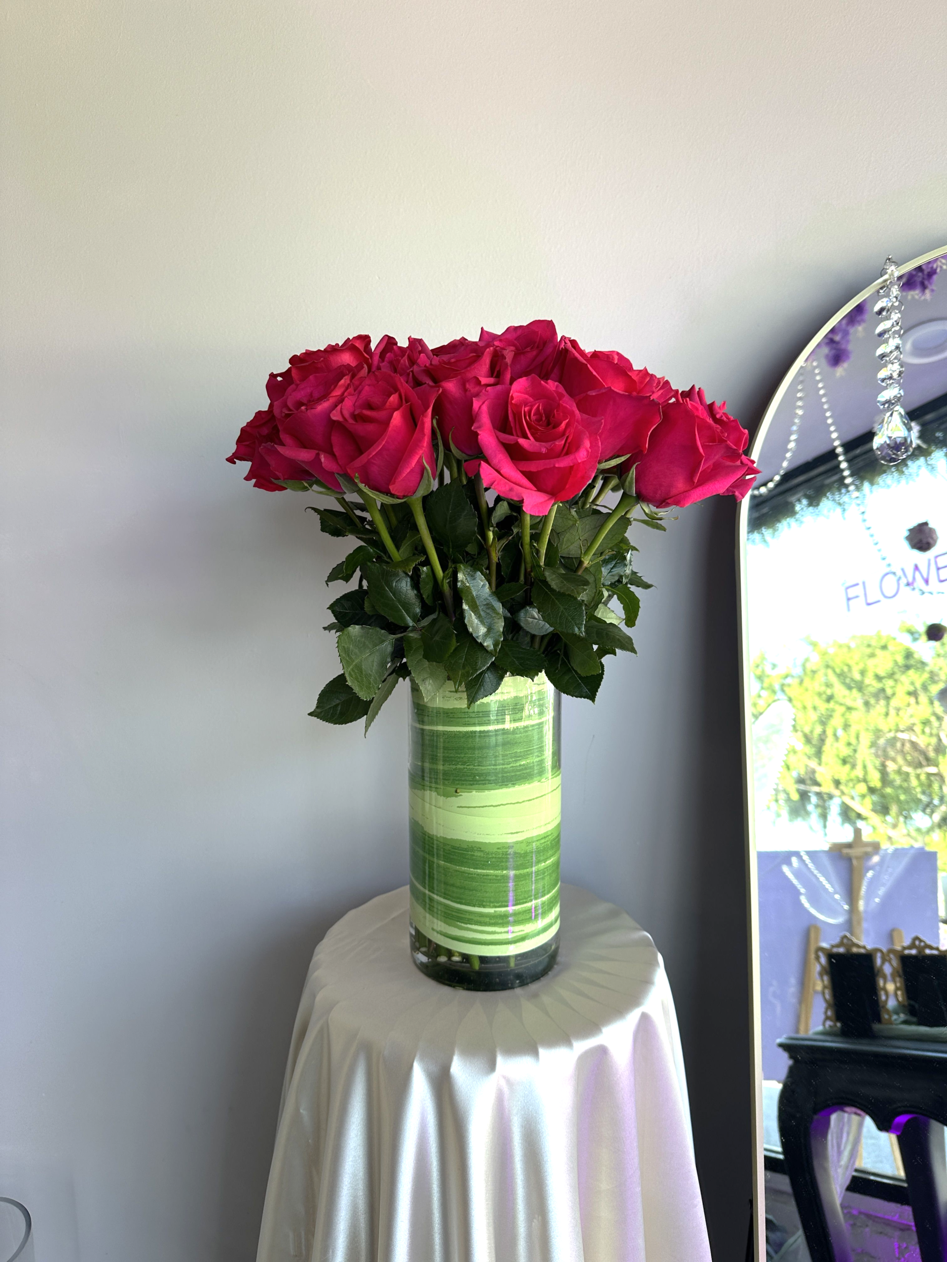 • High-quality multicolor seasonal roses originally come in a vase. Stem length is 60 cm - 80 cm.